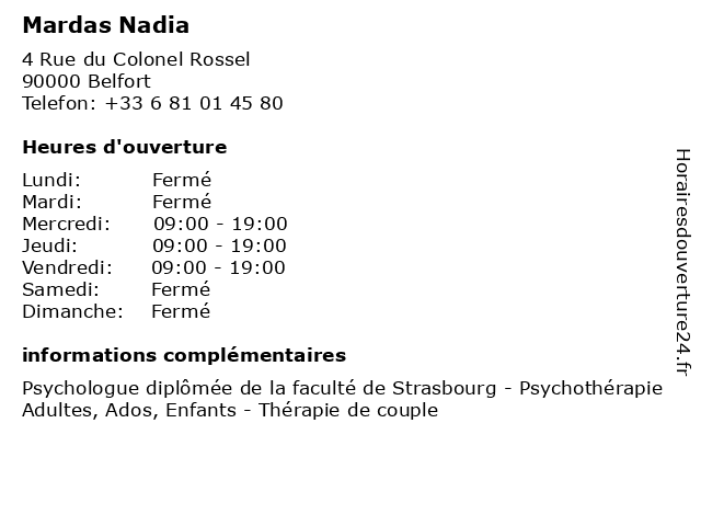 1 Office Notarial - Nadia Arcangeli-Zerr (Distance: 15,49 km) 8 Avenue Wilson, 25201 Montbéliard annonces, arcangeli, bureau, conseils, entreprise, immobilière, nadia, notaire, notarial, office, société, zerr 2 Kabous Hadji Nadia (Distance: 19,41 km) 45 Rue d Audincourt, 25230 Seloncourt hadji, kabous, nadia, restaurants 3 SwissLife Nadia Oudot Agents Général (Distance: 28,86 km) 6 Rue Gilardoni, 68130 Altkirch agents, général, nadia, oudot, swisslife 4 Dr Nadia Maoui - Médecin généraliste (Distance: 44,25 km) 51 Rue du Ballon, 68500 Merxheim docteur, dr, generaliste, généraliste, maoui, medecin, médecin, nadia, soins 5 Salon De The (Distance: 46,57 km) Carre Romain, 88370 Plombieres Les Bains nadia, ramdani, restaurants, salon, the 6 |