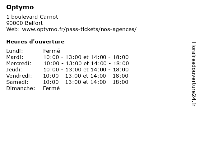 | Mardi | 10:00-13:00 et 14:00-18:00 |