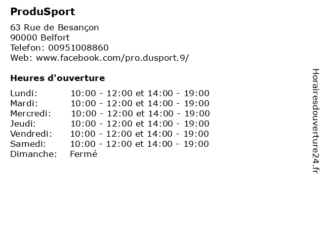 | Samedi | 10:00-12:00 et 14:00-19:00 |