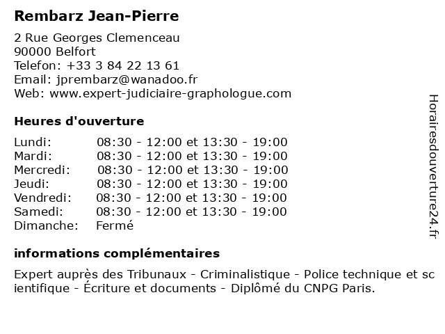 Lundi | 08:30-12:00 et 13:30-19:00 |