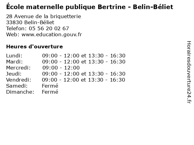 Termes de recherche pour École maternelle publique Bertrine - Belin-Béliet:services, beliet, belin, ecole, education, maternelle, publique, bertrine |