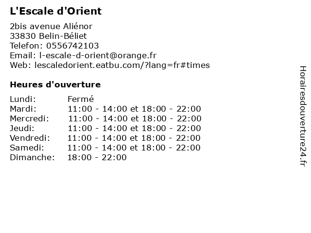 | Mardi | 11:00-14:00 et 18:00-22:00 |