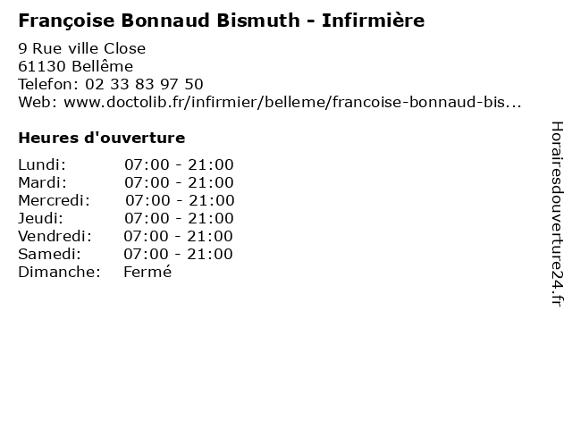 | Samedi | 07:00-21:00 |