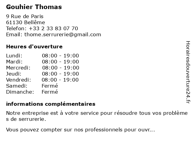 1 Ecole primaire privée Saint Thomas d'Aquin (Distance: 14,12 km) 35 Rue du Fort, 72600 Mamers d'aquin, ecole, primaire, privée, saint, thomas 2 Ambulances Thomas (Distance: 18,88 km) 8 Avenue du Maréchal Foch, 28400 Nogent-le-Rotrou ambulances, thomas 3 Thomas Guiocheau - Pédicure-podologue (Distance: 19,91 km) 37 Rue du Château, 28400 Nogent-le-Rotrou guiocheau, pedicure, pied, podologue, pédicure, sante, thomas 4 TotalEnergies - SARL GOUHIER (Distance: 28,61 km) Brieure, 28480 Vichères gas station, gouhier, sarl, station service, tankstelle, total, totalenergies 5 Le Roi Du Boudin (Distance: 16,31 km) La Roi Du Boudin, 61400 Mortagne Au Perche boucheries, boudin, didier, habert, michel, poissonneries, roi, thomas 6 Thomas Cook (Distance: 35,80 km) 25 Grande Rue, 61000 Alençon agence, billet d'avion et hôtel pour votre club, cook, séjour, thomas, thomas cook, voyage |