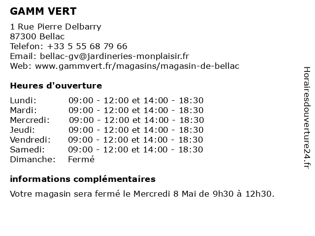 Lundi | 09:00-12:00 et 14:00-18:30 |