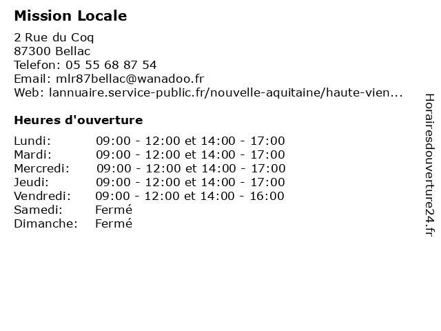 | Mardi | 09:00-12:00 et 14:00-17:00 |