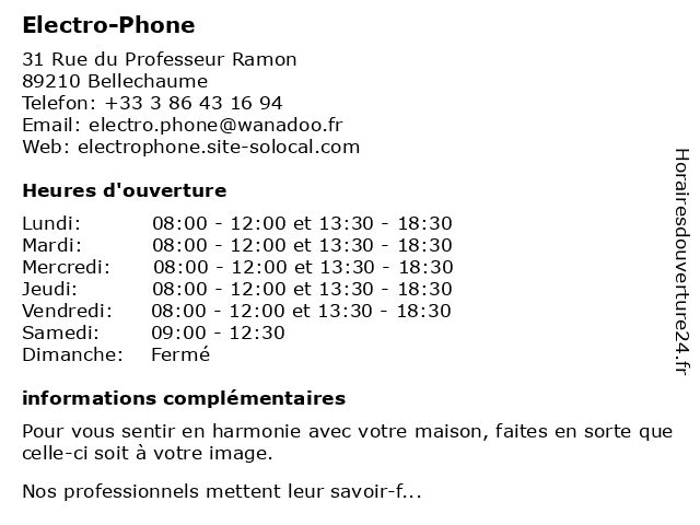 | Mardi | 08:00-12:00 et 13:30-18:30 |