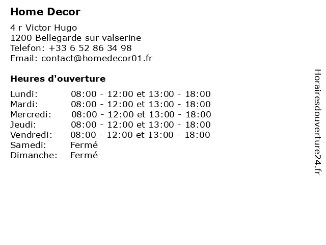 | Lundi | 08:00-12:00 et 13:00-18:00 |