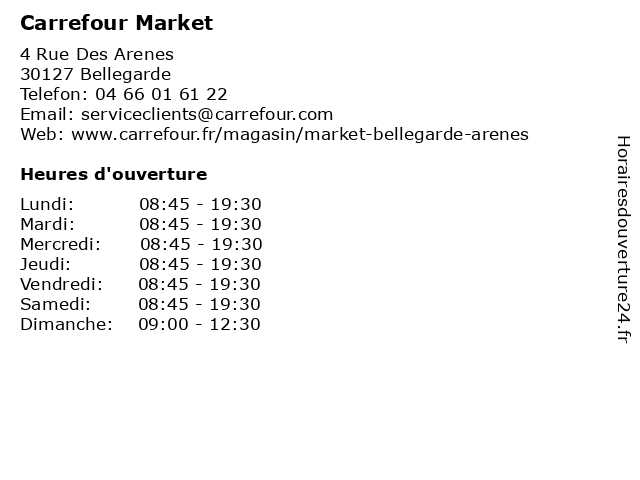 1 Carrefour Market (Distance: 13,82 km) 4 Avenue Yves Bessodes, 30510 Generac alimentation, carrefour, magasin discount, market, supermarché 2 Carrefour Market (Distance: 13,99 km) 140 Allée de Seville, 30000 Nimes alimentation, carrefour, magasin discount, market, supermarché 3 Carrefour Market (Distance: 14,35 km) 1 Rue Paul Painlevé, 30000 Nimes alimentation, carrefour, magasin discount, market, supermarché 4 Carrefour Drive Market (Distance: 0,05 km) 4 Rue Des Arenes, 30127 Bellegarde carrefour, drive, hypermarche, marche, market 5 Sushi Market (Distance: 11,99 km) Sushi Market Chez Leclerc, 13200 Arles arles, market, restaurants, sushi 6 Simply Market (Distance: 13,73 km) - Route de Boulbon, 13150 TARASCON market, simply, supermarchés en franc |