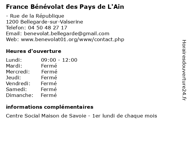 | Samedi | Fermé |