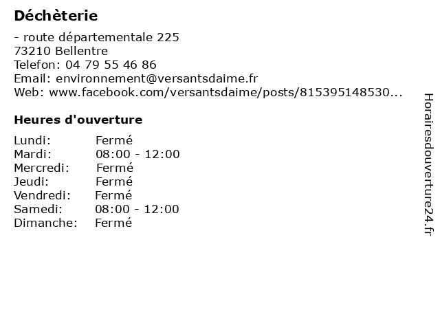 1 Déchèterie (Distance: 3,62 km) - route départementale 221, 73210 Mâcot-la-Plagne déchèterie, gravats, huiles usées, la réception des déchets et écocentres, les appareils électroménagers, les déchets verts, papier et carton en quantité 2 Déchèterie (Distance: 5,25 km) n/c route de la Croisette, 73700 Bourg-Saint-Maurice bennes, collecte, déchets, déchèterie, détritus, gravats, tri 3 Déchèterie (Distance: 6,59 km) - Rue de Pinon, 73700 Bourg-Saint-Maurice déchèterie, gravats, huiles usées, la réception des déchets et écocentres, les appareils électroménagers, les déchets verts, papier et carton en quantité 4 Déchèterie (Distance: 18,32 km) - Courchevel, 73120 Saint-Bon-Tarentaise déchèterie, gravats, huiles usées, la réception des déchets et écocentres, les appareils électroménagers, les déchets verts, papier et carton en quantité 5 Déchèterie (Été) (Distance: 2,54 km) - route nationale 90, 73210 Valezan bennes, collecte, déchets, déchèterie, détritus, gravats, tri, été 6 Déchèterie (Hiver) (Distance: 2,54 km) - route nationale 90, 73210 Valezan bennes, collecte, déchets, déchèterie, détritus, gravats, hiver, tri |