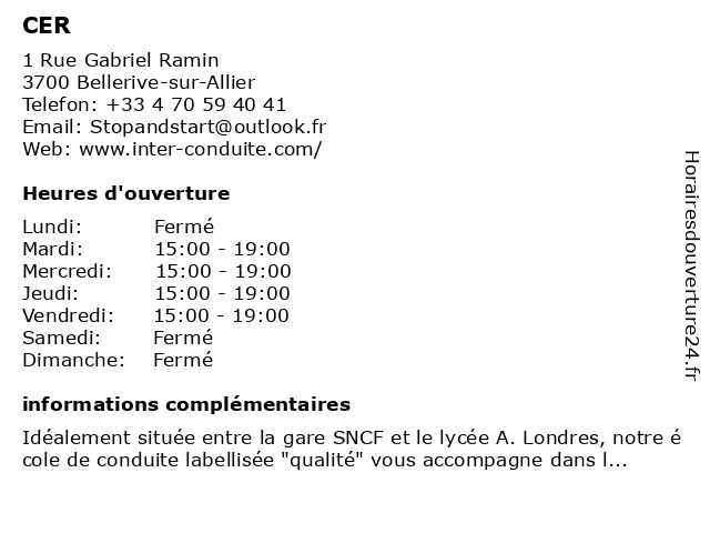 | Samedi | Fermé |