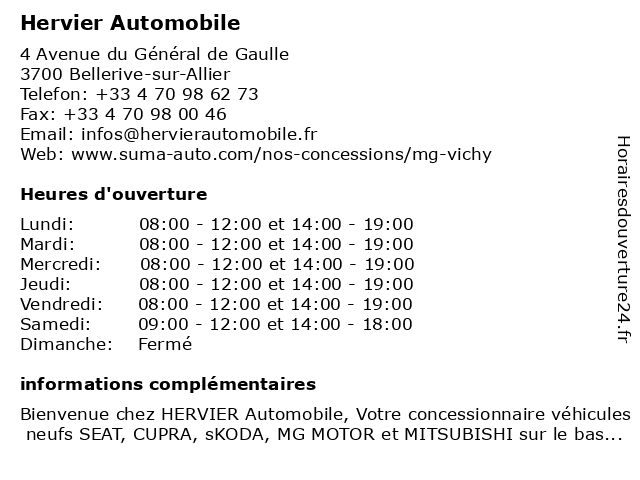 | Mercredi | 08:00-12:00 et 14:00-19:00 |