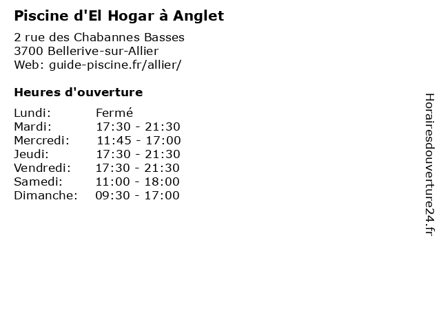| Lundi | Fermé |