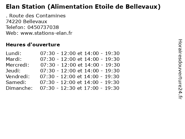 | Samedi | 07:30-12:00 et 14:00-19:30 |