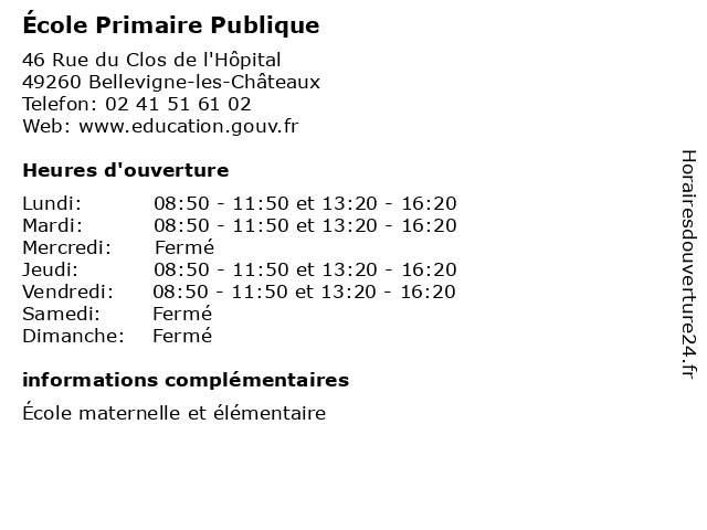 1 École primaire publique (Distance: 3,42 km) 61 Rue Joachim du Bellay, 49260 Saint-Just-sur-Dive cours, dive, education, just, primaire, publique, saint, services, sur, école, élémentaire 2 École Primaire Publique (Distance: 3,47 km) . Impasse des Poussins, 49260 Épieds cours, education, primaire, publique, services, École, école 3 École Primaire Publique (Distance: 9,99 km) 1 Rue de l'Abbaye, 49700 Cizay-la-Madeleine cizay, cours, la, madeleine, primaire, publique, services, école 4 École Primaire Publique (Distance: 10,03 km) 1 Place des Diligences, 49730 Montsoreau cours, education, primaire, publique, services, école 5 École Primaire Publique (Distance: 13,02 km) 9 Place des Prés de Vienne, 37500 Saint-Germain-sur-Vienne cours, education, primaire, publique, services, école 6 École primaire publique (Distance: 14,94 km) 20 Rue des Écoles, 79290 Saint-Martin-de-Sanzay cours, de, dufournet, joseph, martin, primaire, publique, saint, sanzay, services, école |