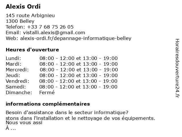 | Samedi | 08:00-12:00 et 13:00-19:00 |