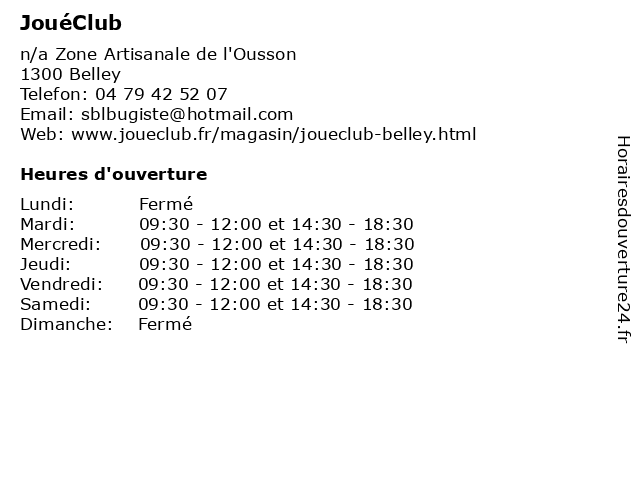 | Mardi | 09:30-12:00 et 14:30-18:30 |