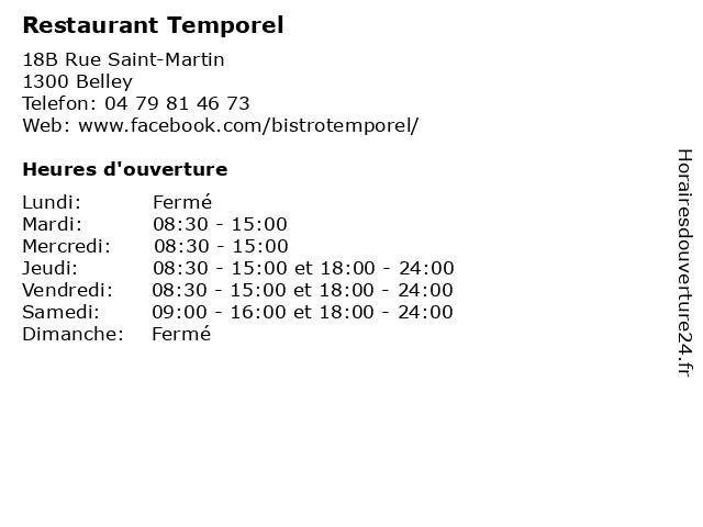 1 Bar-Tabac Le Temporel (Distance: 45,39 km) - lieu-dit Maltaverne, 73390 Châteauneuf bar, café, cigarettes, fdj, le, magazine, pmu, presse, tabac, temporel 2 Restaurant Le Bouchon (Distance: 0,06 km) 21 Rue Saint Martin, 01300 Belley bar, bistro, bistrot, bouchon, brasserie, café, le, pub, restaurant, restauration, resto 3 Restaurant La Table Bugiste (Distance: 0,11 km) 57 Rue de la République, 01300 Belley bugiste, la, restaurant, restauration, table 4 L'Atelier des Sens (Distance: 0,13 km) 10 Rue Georges Girerd, 01300 Belley des, l'atelier, restaurant, restauration, sens 5 Boulangerie Marie Blachère (Distance: 0,20 km) - Lieu-dit La Poterie, 01300 Belley blachère, boulangerie, marie, patisserie, restauration, snacking, viennoiserie 6 McDonald's Belley (Distance: 0,20 km) - Route Nationale 504, 01300 Belley belley, burgers, fast, food, hamburgers, mcdonald's, rapide, restaurant, restauration |