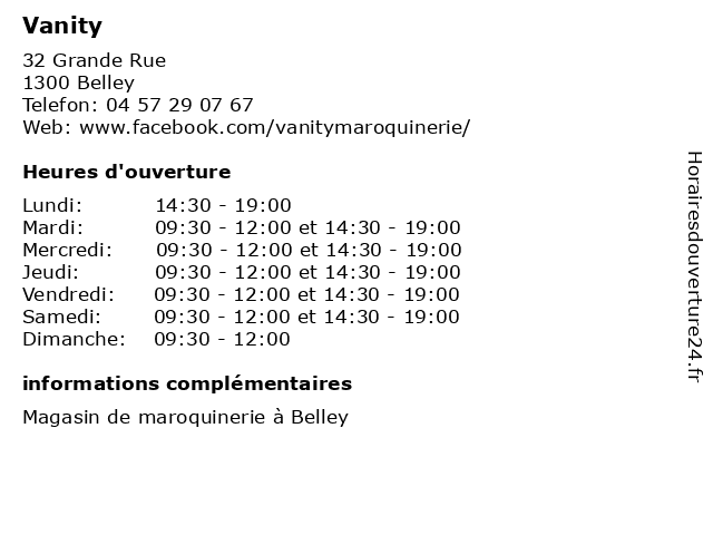 | Samedi | 09:30-12:00 et 14:30-19:00 |