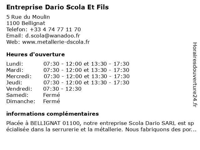 | Lundi | 07:30-12:00 et 13:30-17:30 |