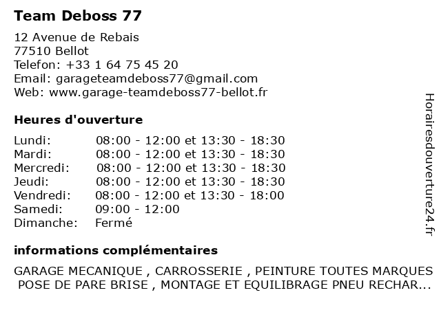 | Lundi | 08:00-12:00 et 13:30-18:30 |