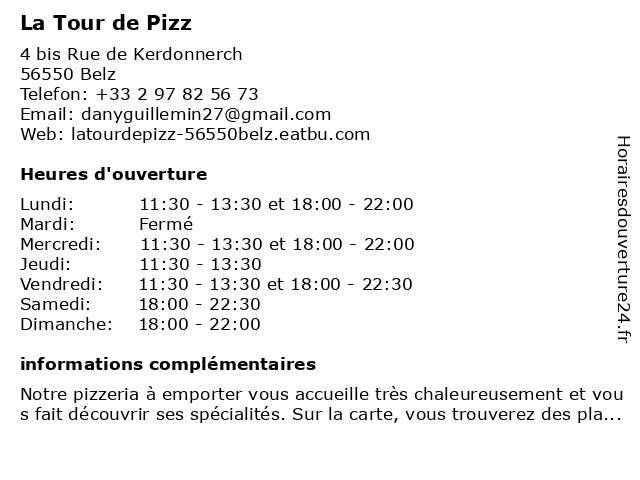 1 Au Rdv De La Pizz (Distance: 3,18 km) 24 Lotissement Parc Penhouet, 56410 Erdeven au, cuisine, de, la, pizz, rdv, restaurants, restauration 4 Ker Pizz Chez Phil (Distance: 11,19 km) 2 rue de la Mairie, 56700 Kervignac chez, kebab, ker, phil, philippe, pizz, pizza, restaurants 5 La Tour De Pise (Distance: 13,45 km) 19 Avenue Miln, 56340 Carnac de, la, pise, pizzas, pizzeria, restaurant, tour, à emporter 6 |