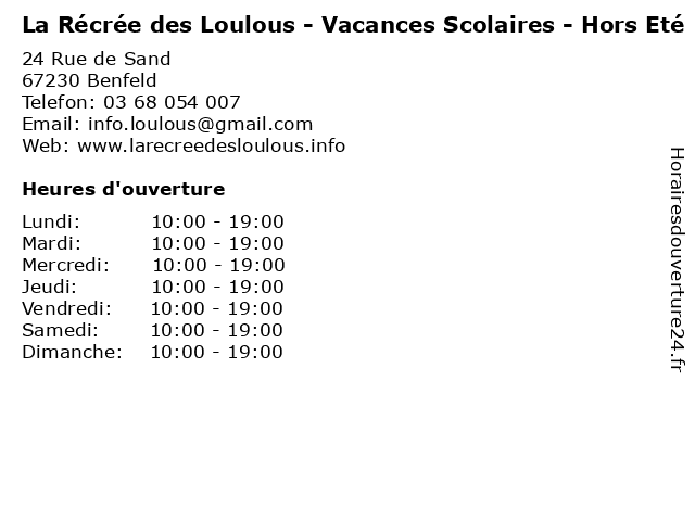 | Lundi | 10:00-19:00 |