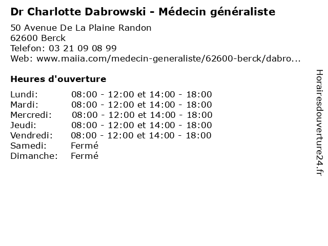 | Lundi | 08:00-12:00 et 14:00-18:00 |