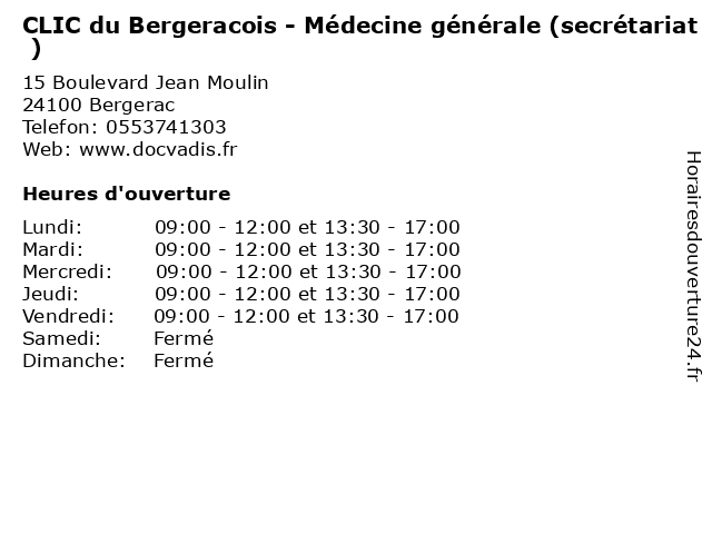 Termes de recherche pour CLIC du Bergeracois - Médecine générale (secrétariat ):du, générale, medecine, santé, clic, secretariat, docteur, consultation, bergeracois |
