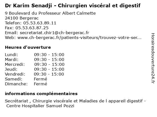 1 Dr José Pujol-Gastaminza - Chirurgien viscéral, bariatrique et endoscopique (Distance: 0,00 km) 9 Boulevard du Professeur Albert Calmette, 24100 Bergerac bariatrique, chirurgien, consultation, docteur, dr, endoscopique, et, gastaminza, josé, med, médecin, médecine, pujol, traitement, viscéral 2 Dr Georges Marachly - Chirurgien viscéral et digestif (Distance: 0,59 km) 54-56 rue du Professeur Pozzi, 24100 Bergerac chirurgien, consultation, digestif, docteur, dr, et, georges, marachly, med, médecin, médecine, traitement, viscéral 3 Dr Matthieu Scheffler - Chirurgien viscéral et digestif (Distance: 1,02 km) 53 Rue Jean Macé, 24100 Bergerac chirurgie, chirurgien, digestif, dr, et, general, matthieu, scheffler, soins, viscéral 4 Dr Romain Besson - Chirurgien viscéral et digesti (Distance: 40,63 km) 39 Boulevard de Vesone, 24000 Périgueux besson, chirurgie, chirurgien, digesti, dr, et, general, romain, soins, viscéral 5 Medecin Daniel Bercovici (Chirurgien viscéral) (Distance: 42,07 km) 80 Avenue Georges Pompidou, 24000 Perigueux bercovici, chirurgien, daniel, docteur, medecin, sante, services, viscéral 6 Dr Vincent Blondeau - Chirurgien viscéral et digestif (Distance: 42,23 km) 80 Avenue Georges Pompidou, 24000 Périgueux blondeau, chirurgien, digestif, dr, et, médecins, médicaments, santé, secrétariat, spécialiste, vincent, viscéral |
