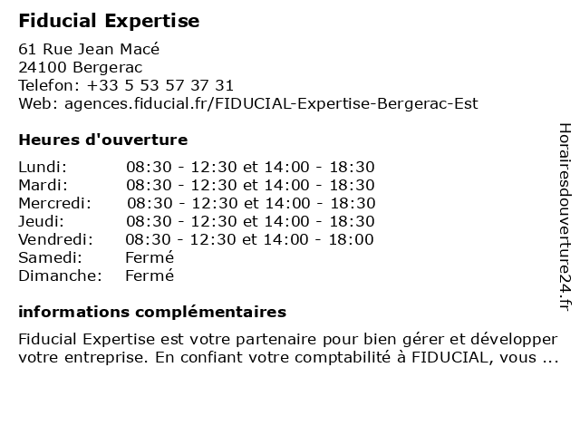 | Samedi | Fermé |