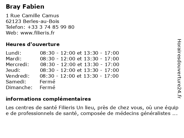 | Lundi | 08:30-12:00 et 13:30-17:00 |