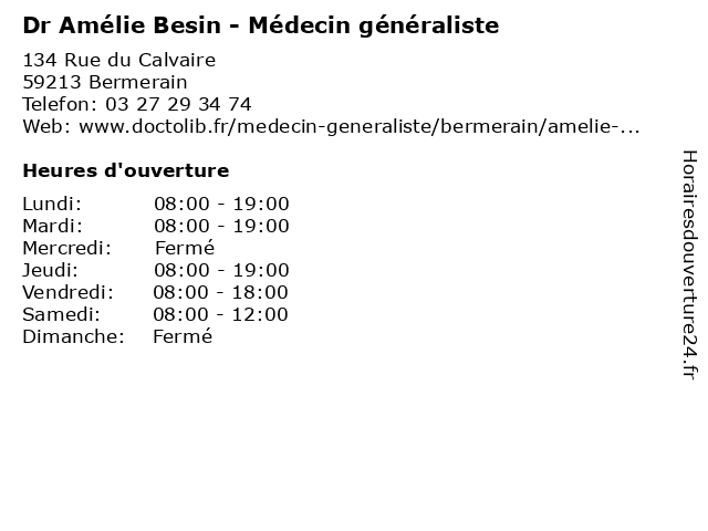| Lundi | 08:00-19:00 |