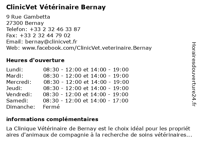 | Mercredi | 08:30-12:00 et 14:00-19:00 |
