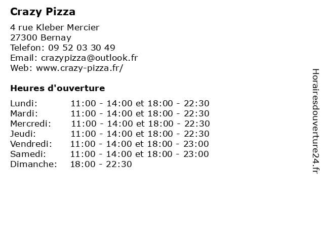 | Mercredi | 11:00-14:00 et 18:00-22:30 |
