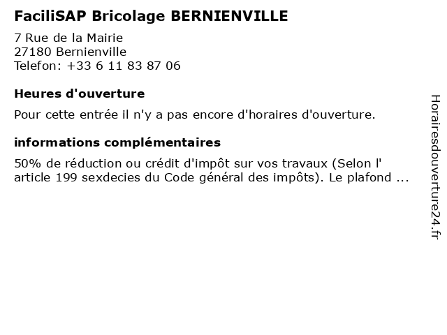 Appeler FaciliSAP Bricolage BERNIENVILLE | |