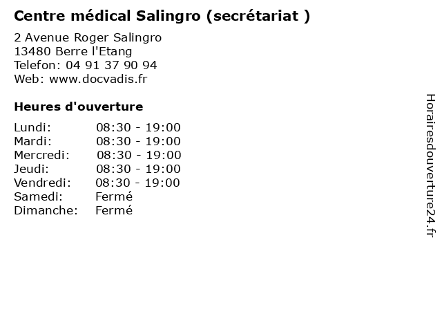 1 Groupe Médical de Berre - Ophtalmologie (secrétariat ) (Distance: 0,02 km) 2 av helene Bouchet, 13130 Berre Letang berre, consultation, de, docteur, groupe, médical, ophtalmologie, santé, secrétariat 2 centre médical de Rognac - Médecine générale (secrétariat ) (Distance: 5,34 km) 32 avenue Camille Pelletan, 13340 Rognac centre, consultation, de, docteur, générale, médecine, médical, rognac, santé, secrétariat 3 Centre Médical Pasteur - Médecine générale (secrétariat ) (Distance: 9,22 km) 222 Boulevard Edouard Herriot, 13730 Saint-Victoret centre, consultation, docteur, générale, martinez, médecine, médical, pasteur, pierre, santé, secrétariat, yves 4 Centre médical Saint-Exupery (secrétariat ) (Distance: 11,12 km) 4 la Fonse, 13180 Gignac-la-Nerthe centre, consultation, docteur, exupery, médecins, médical, saint, santé, secrétariat 5 Dr Brigitte Jaubert - Gynécologue médical (Distance: 14,19 km) 2 Chemin de la Combe aux Fées, 13800 Istres brigitte, dr, entretien, gynécologue, jaubert, maternelle, médical, pmi, protection, précoce, prénatal 6 Cabinet Médical des Spécialistes - Médecine Interne (secrétariat ) (Distance: 14,58 km) - Rue Genestelle, 13800 Istres cabinet, consultation, des, docteur, interne, médecine, médical, santé, secrétariat, spécialistes |