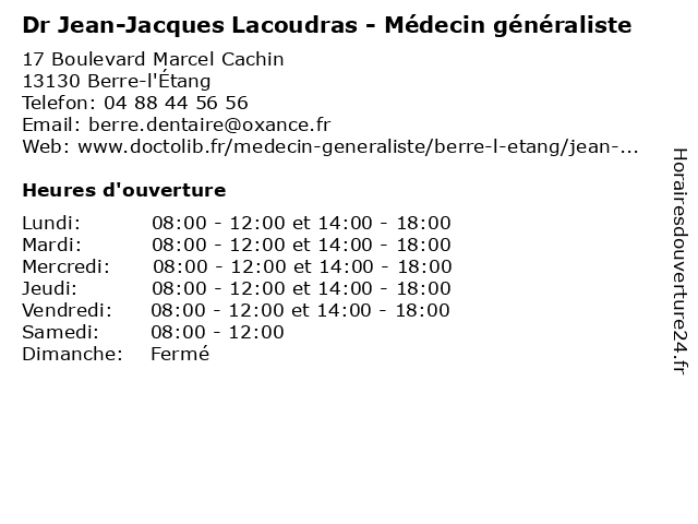 | Lundi | 08:00-12:00 et 14:00-18:00 |