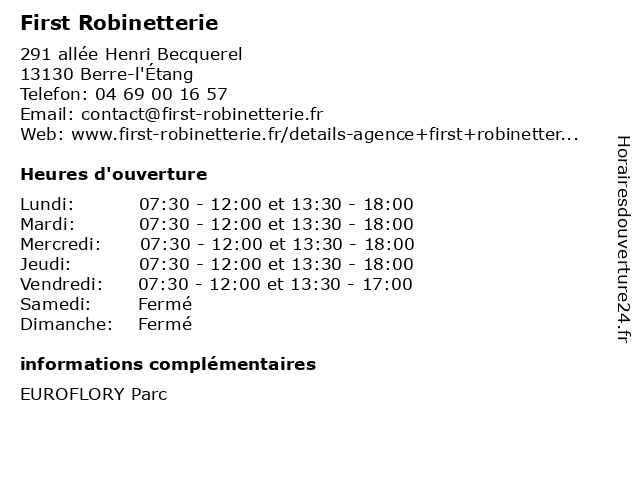 | Vendredi | 07:30-12:00 et 13:30-17:00 |