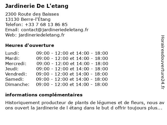 Termes de recherche pour Jardinerie De L'etang:de, jardinerie, l'etang |
