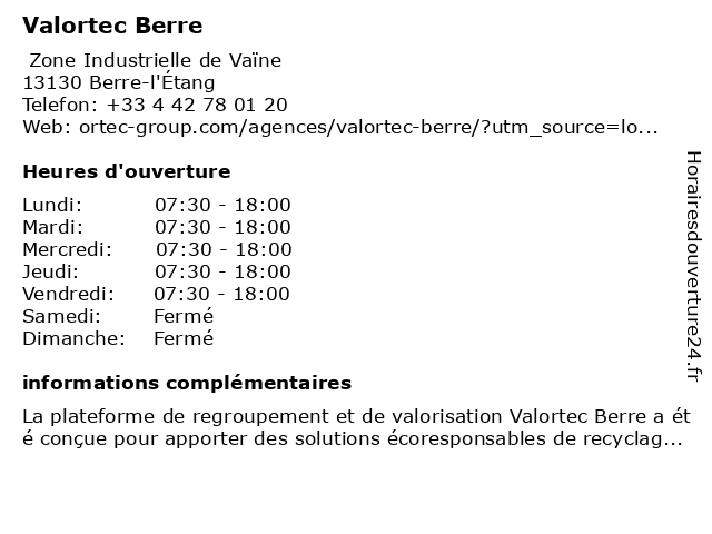 Termes de recherche pour Valortec Berre:berre, valortec |