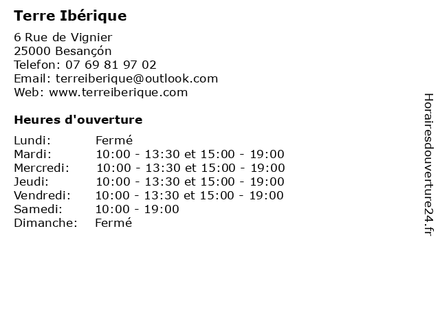 | Vendredi | 10:00-13:30 et 15:00-19:00 |