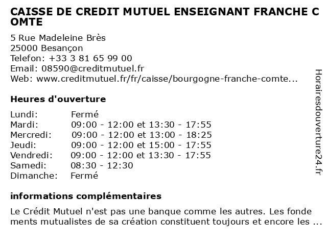 Termes de recherche pour CAISSE DE CREDIT MUTUEL ENSEIGNANT FRANCHE COMTE:de, comte, crédit, mutuel, caisse, franche, enseignant |