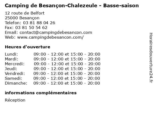| Samedi | 09:00-12:00 et 15:00-20:00 |