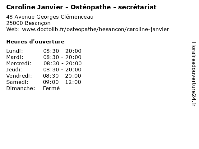 | Lundi | 08:30-20:00 |