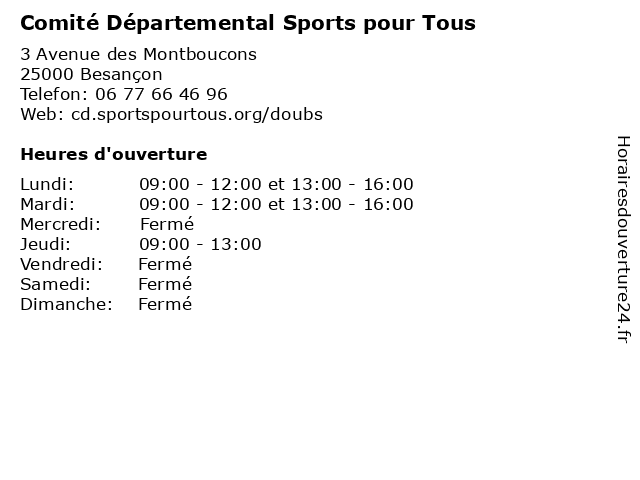 | Mardi | 09:00-12:00 et 13:00-16:00 |