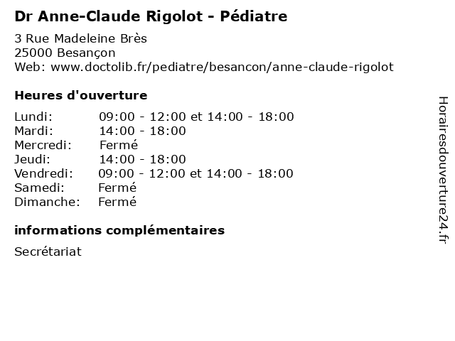 | Lundi | 09:00-12:00 et 14:00-18:00 |