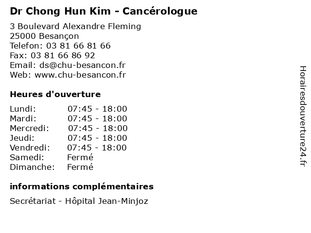 Termes de recherche pour Dr Chong Hun Kim - Cancérologue:med, medecine, kim, traitement, docteur, médecin, consultation, dr, cancérologue, chong, hun |