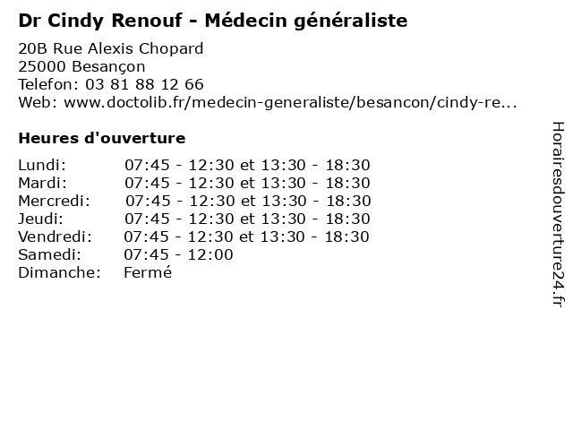 | Mercredi | 07:45-12:30 et 13:30-18:30 |